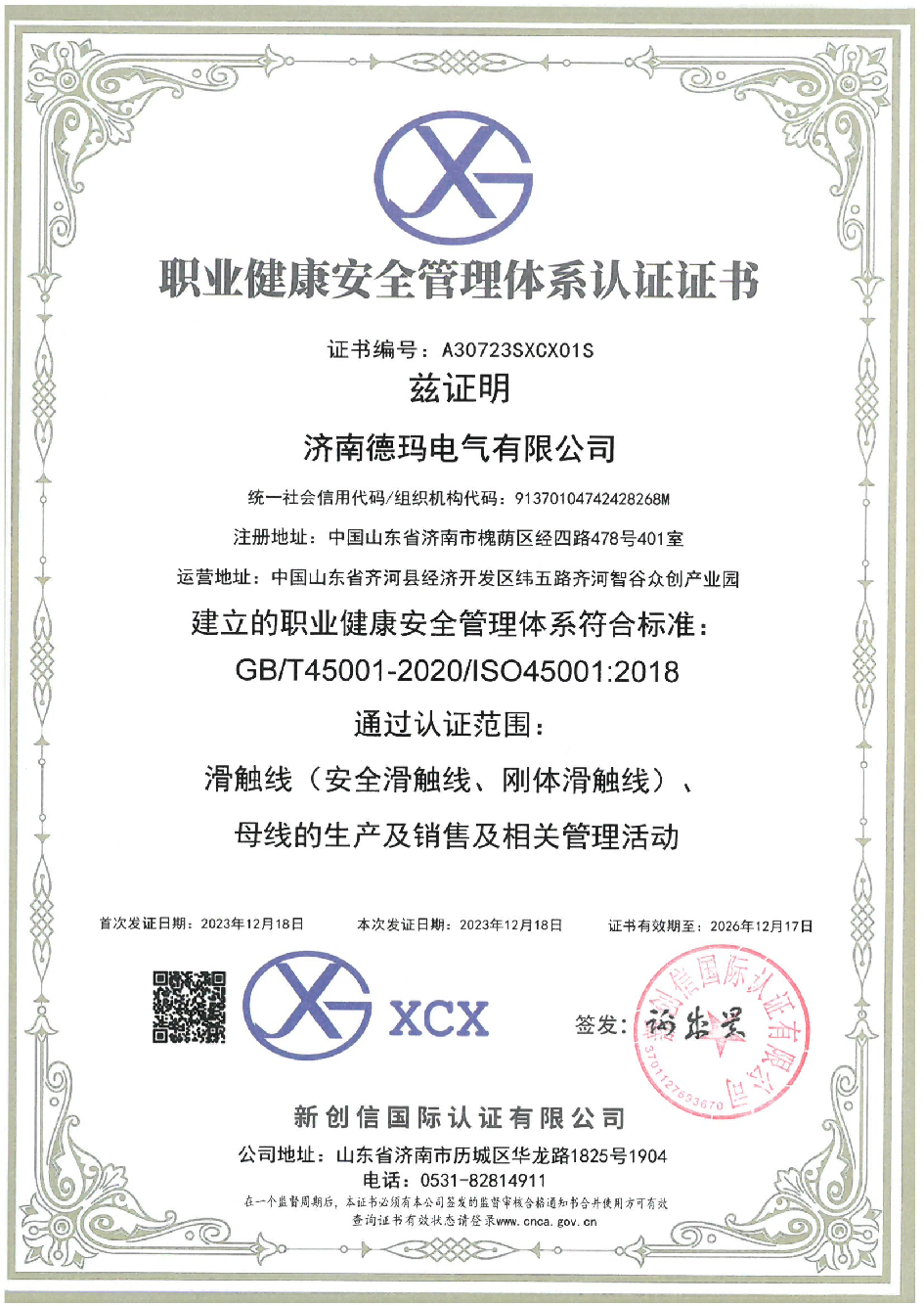 • 職業(yè)健康安全管理體系認證證書職業(yè)健康安全管理體系認證證書