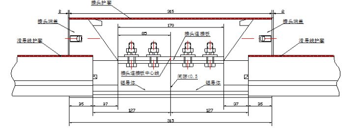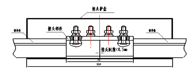 1.鋁接頭在安裝時應放在兩根滑線中間,輕型兩端各35mm,重型兩端各85mm。避免出現(xiàn)因方頭螺栓分布不均,造成兩端受力不均勻而出現(xiàn)滑線脫節(jié)現(xiàn)象。