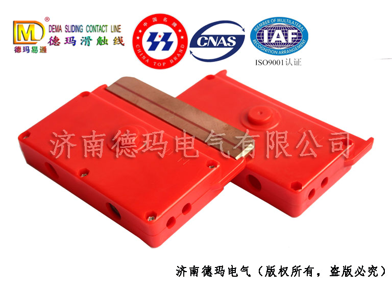 集電器碳刷又名集電器觸靴、靴片、刀頭、銅片,是集電器的最關(guān)鍵部件,集電器上碳刷在滑觸線內(nèi)移動(dòng),實(shí)現(xiàn)不間斷供電。我公司的觸靴是采用石墨合金銅配方,經(jīng)高溫處理特殊工藝制作而成,耐磨性是國內(nèi)同類產(chǎn)品的4-5倍。