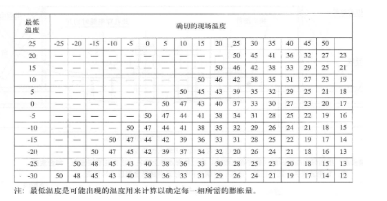 3、當(dāng)現(xiàn)場(chǎng)溫度介于最高與最低之間時(shí),安裝膨脹段時(shí)所需要拉開(kāi)的間隙應(yīng)通過(guò)查