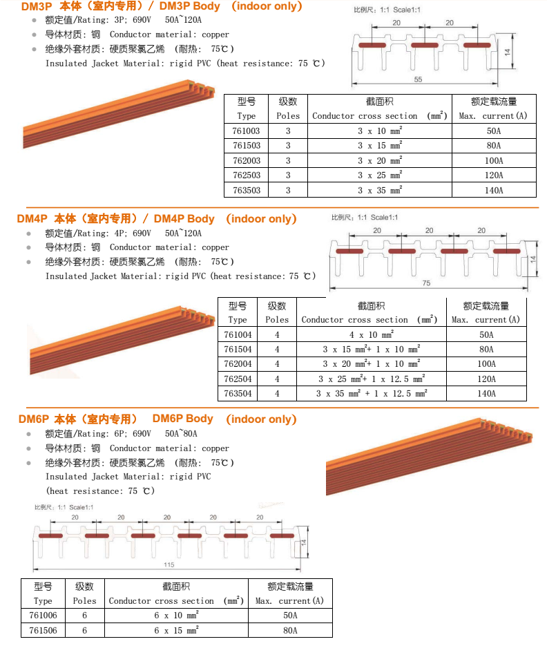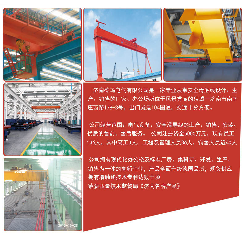 DMWJF型無接縫安全滑觸線結(jié)構(gòu)由PVC塑料板與銅片構(gòu)成,其主要有三級(jí)、四級(jí)、六級(jí)等三個(gè)種類。 DMWJF型無接縫滑觸線主要配件有一字型支架、提掛架、集電器、中間供電器、拉緊器、集電器支架等配件。德瑪牌無接縫滑觸線導(dǎo)體材料采用T2紫銅,增加導(dǎo)體導(dǎo)電性能,外殼為PVC加碳酸鈣粉材料,增加其柔韌性及其硬度,保證其使用壽命。 無接縫滑觸線主要應(yīng)用在自動(dòng)化設(shè)備、立體車庫(kù)、車間流水線、起重設(shè)備供電等相關(guān)行業(yè),無接縫滑觸線要求軌道運(yùn)行長(zhǎng)度最好不要超過100米,運(yùn)行速度每分鐘不能超過200米。