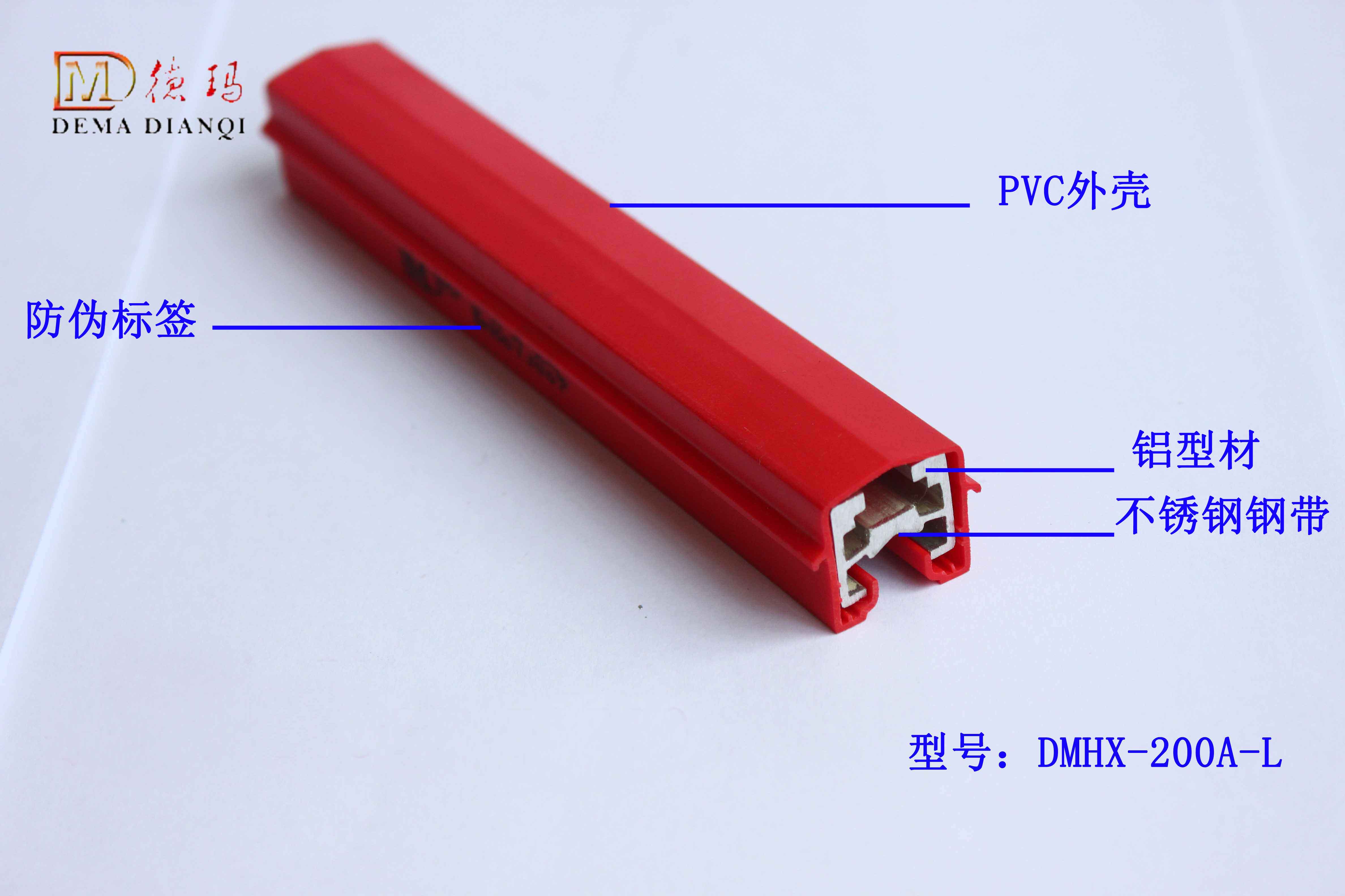 其次,該類型產品結構為:紅色外殼為PVC材料,外加阻燃材料;導體為6101專業(yè)導電鋁;并且在鋁型材內部嵌入304牌號不銹鋼鋼帶;提高起耐磨性。